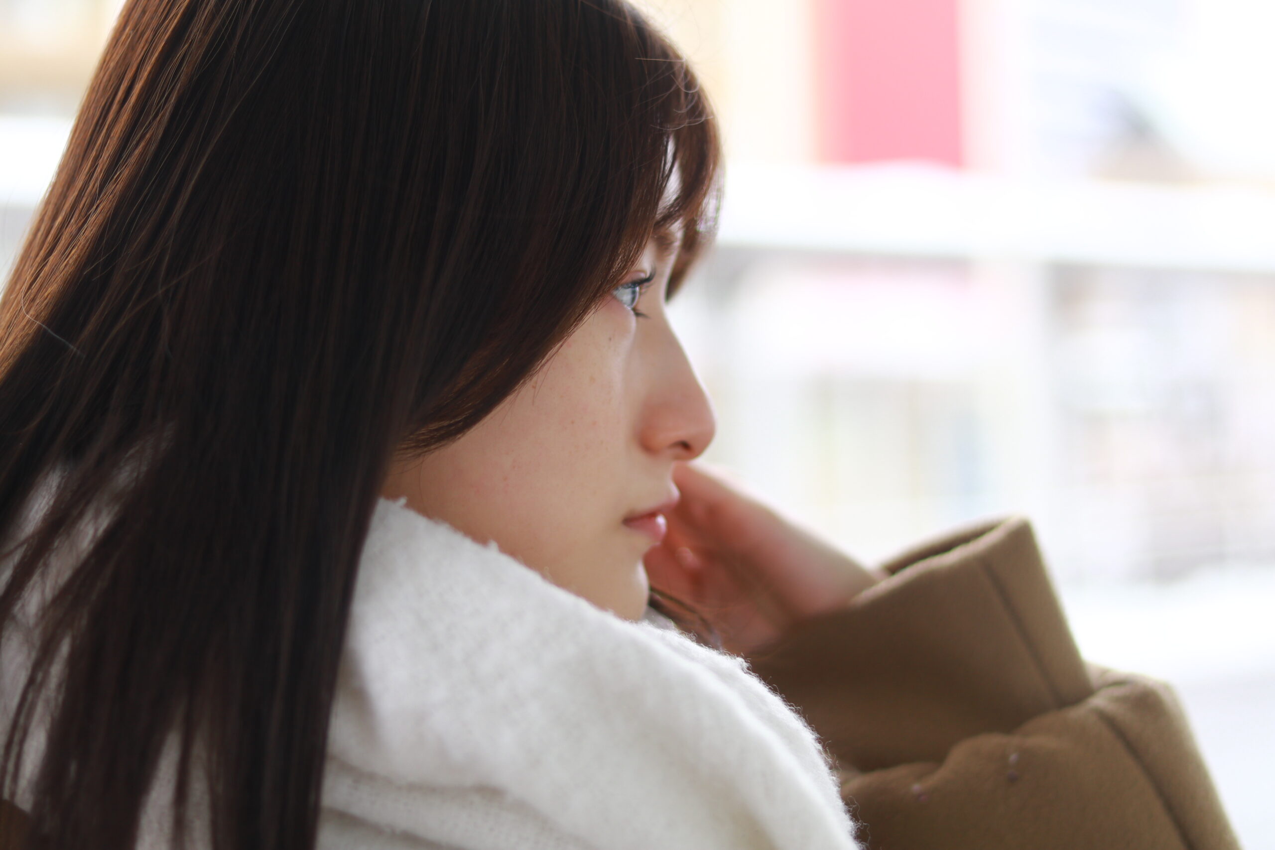 コーデポイントは、雪景色に合うようなシンプルコーデ。
